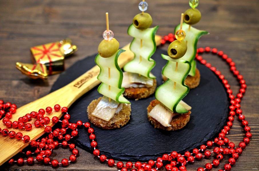 Такие канапе подойдут для любого праздника, ведь многие любят селедочку с хрустящей греночкой и огурчиком. И, конечно, для новогоднего стола я советую вам взять этот рецепт на заметку.