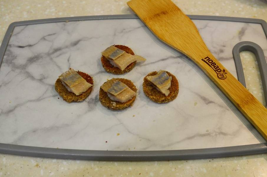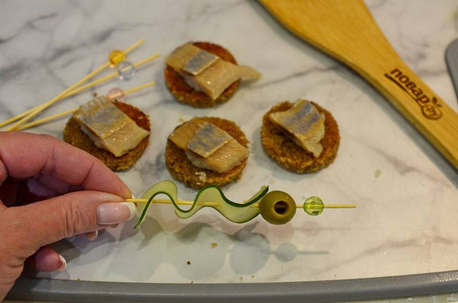 6. Шпажку воткните а сельдь с гренкой. Приятного аппетита!
