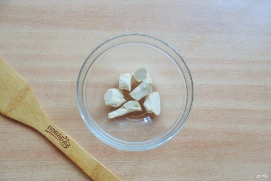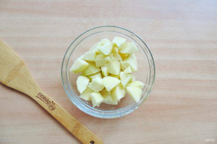 Яблоко помойте, очистите, удалите семенную коробочку и нарежьте.