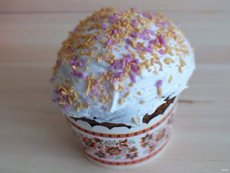 Украсьте кулич присыпкой.