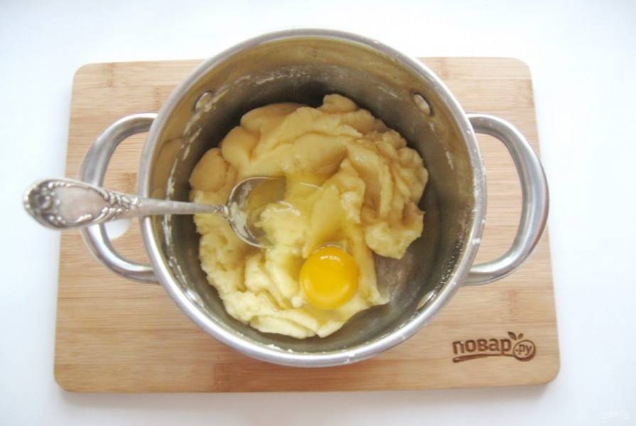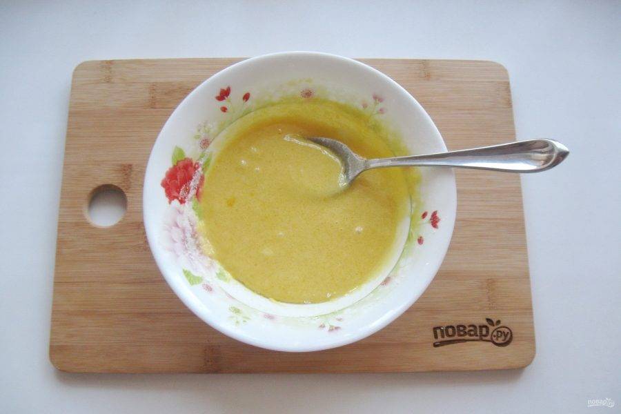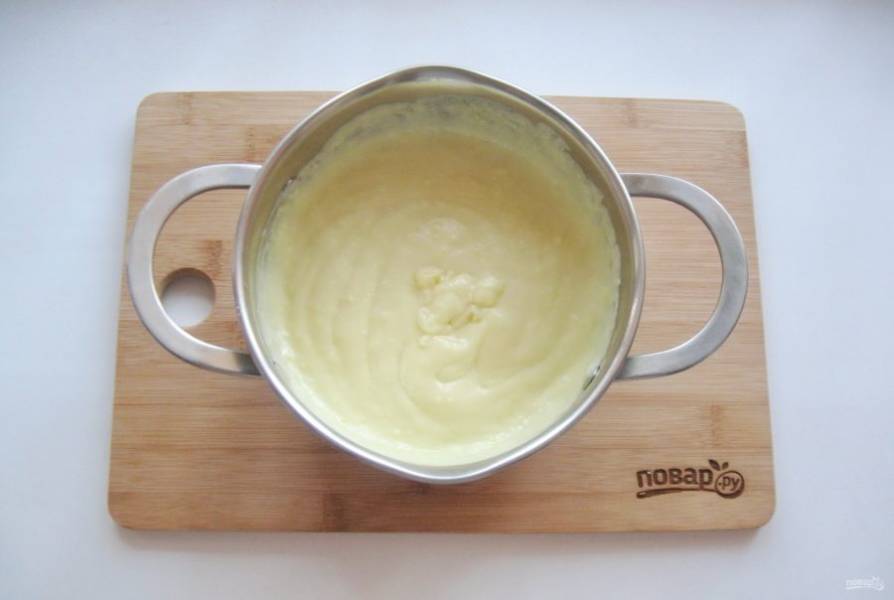 Каждое следующее яйцо следует добавлять только после того, как предыдущее полностью вмешается. Должна получится однородная, немного вязкая масса.