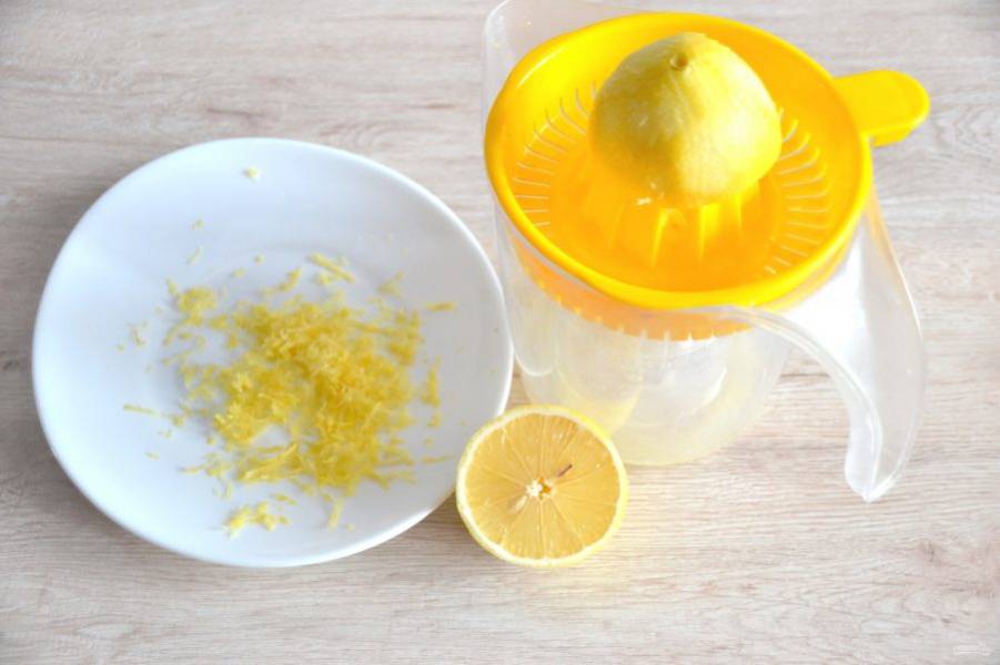 Пока заготовки для профитролей остывают, натрите цедру лимона, выжмите сок.