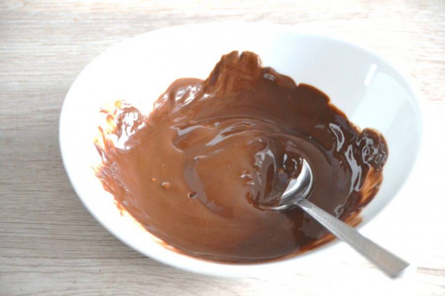 Растопите шоколад в микроволновой печи короткими импульсами по 15-20 секунд.