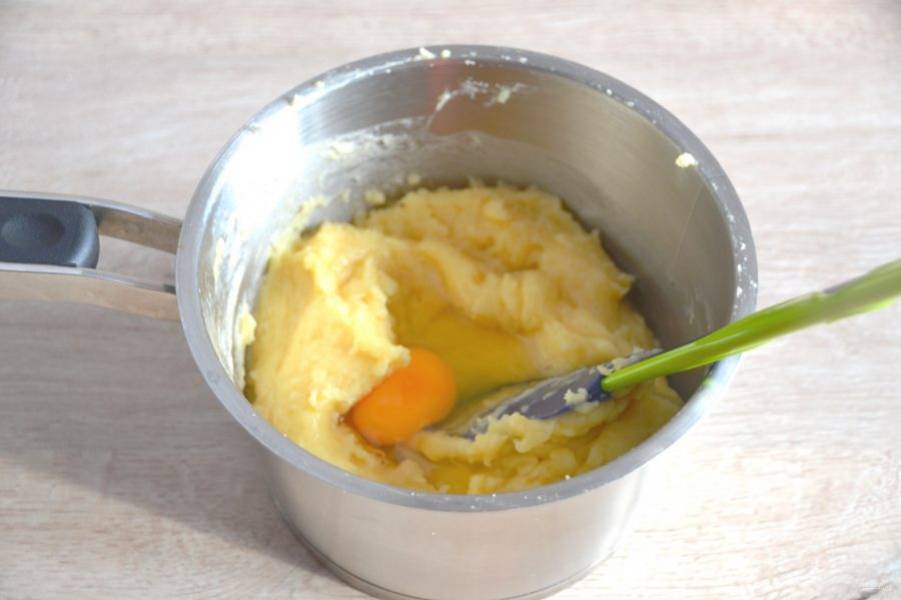 Добавьте в тесто по одному яйцу, интенсивно вмешивая каждое яйцо по отдельности.