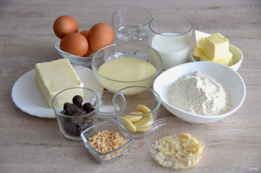 - Масло сливочное 280 грамм 100 грамм — в тесто, 180 грамм — в крем, комнатной температуры