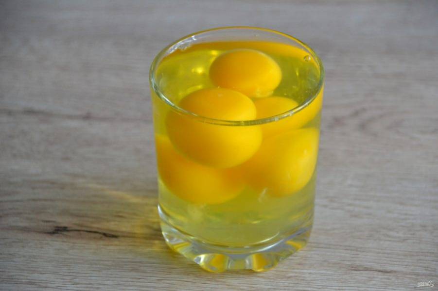 Для удобства вбейте в стакан все яйца по рецепту.