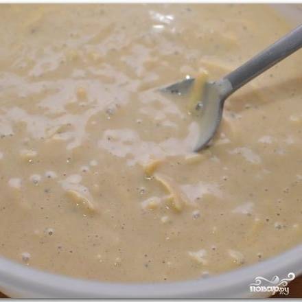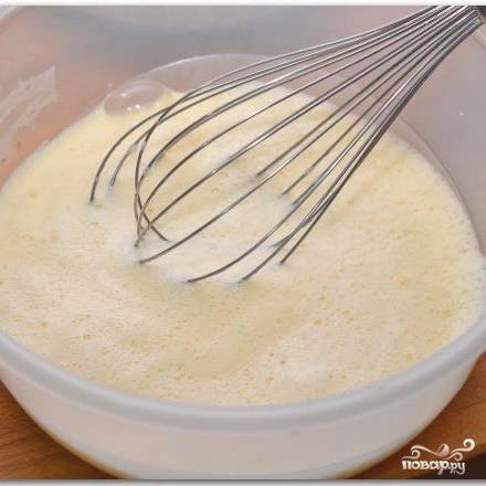 Взбитые до состояния пены яйца переливаем в глубокую мисочку.