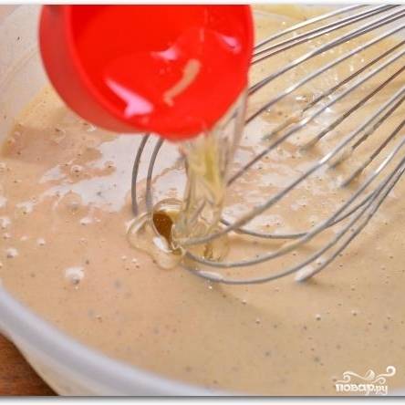 Вливаем в смесь растительное масло, вновь месим до однородности.