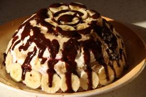 делаем глазурь- на водяной бане растапливаем шоколад и сливочное масло до однородной консистенции) банан режем на кружочки и выкладываем на торт. Дайте волю фантазии!Пусть ваше Чудо будет самое красивое) Поливаем сверху банан глазурью) Торт ГОТОВ) приятного аппетита))))