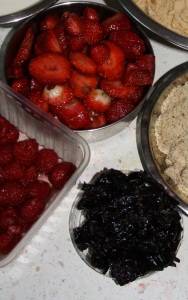 измельчаем клубнику и чернослив. По желанию-размеры кусочков.