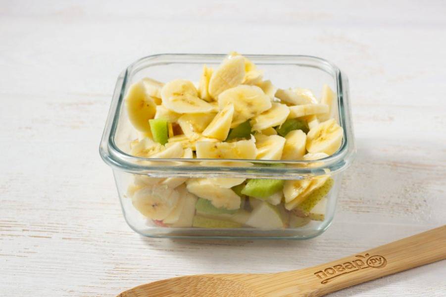 Следом отправляем кусочки очищенного банана.