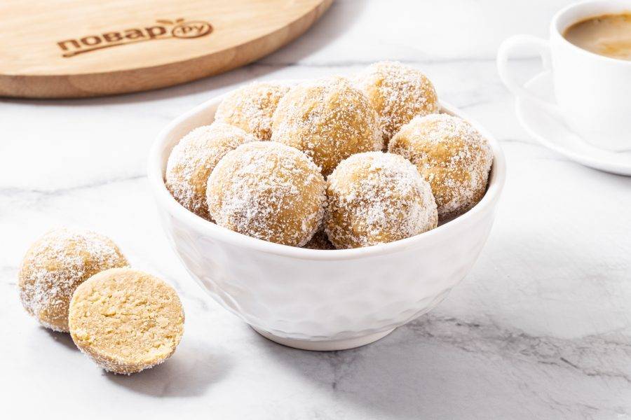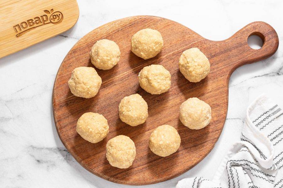 Разделите получившуюся массу на равные кусочки по 15-20 г. Скатайте в шарики.