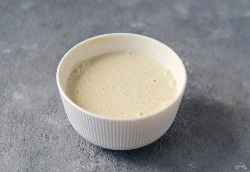 Соедините сухие и жидкие ингредиенты, перемешайте до однородной консистенции.