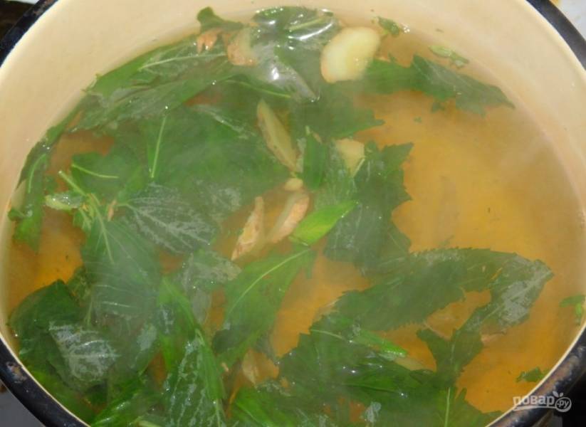 Добавьте листья мяты и проварите все минут 10.