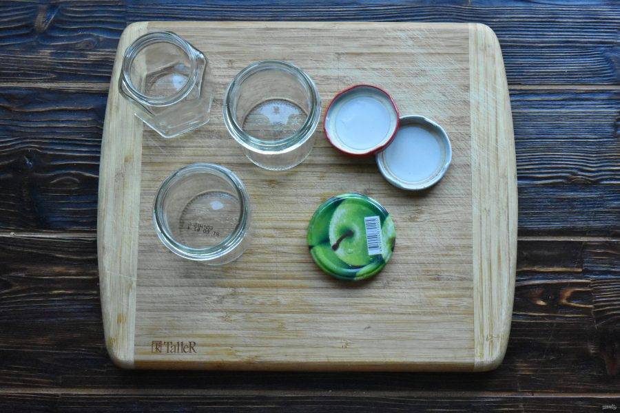 Пока готовится варенье подготовьте банки и крышки к ним. Банки тщательно помойте. Простерилизовать стеклянную посуду можно над паром, в микроволновой печи или в духовке. Крышки залейте кипятком.