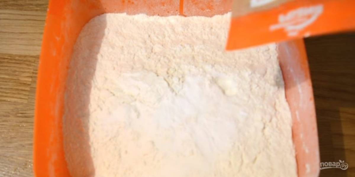 1. Смешайте все сухие ингредиенты – просеянную муку, соду и разрыхлитель. Отдельно смешайте венчиком молоко, сахар, ванильный сахар, соль и желтки.