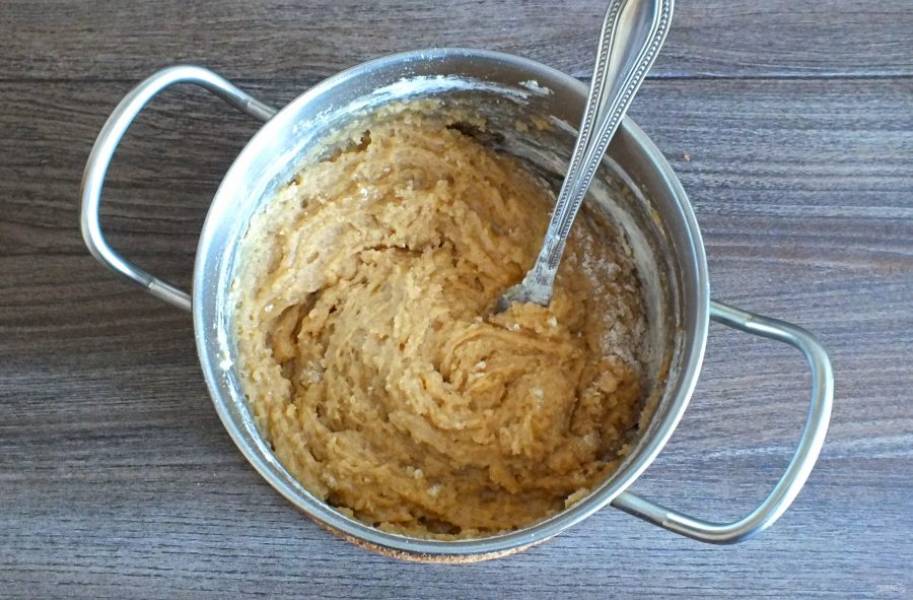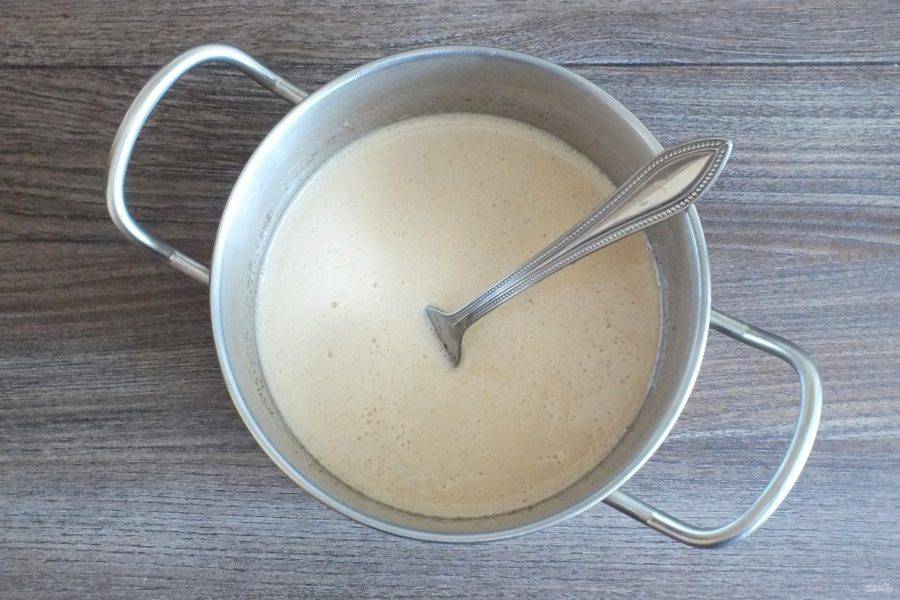 Как только масса начнет пениться и крупинки сахара растают, массу снимите с огня.