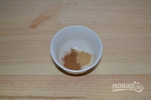 4. Тем временем соедините измельченный кардамон, имбирь и корицу.