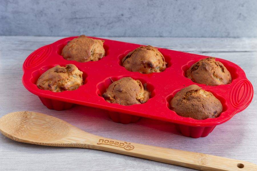 Выпекайте кексы 25-30 минут при температуре 180 градусов. Затем выключите духовку и оставьте их там на 7-10 минут.