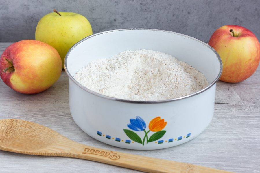 Муку просейте с разрыхлителем, добавьте все специи и перемешайте.