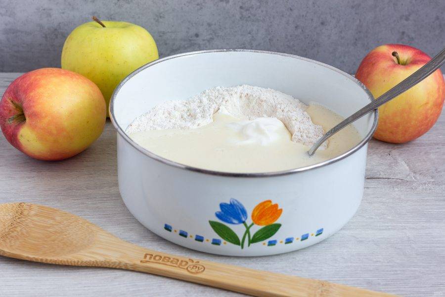 Затем добавьте оставшуюся массу и размешайте до однородности. Сильно вымешивать не нужно.