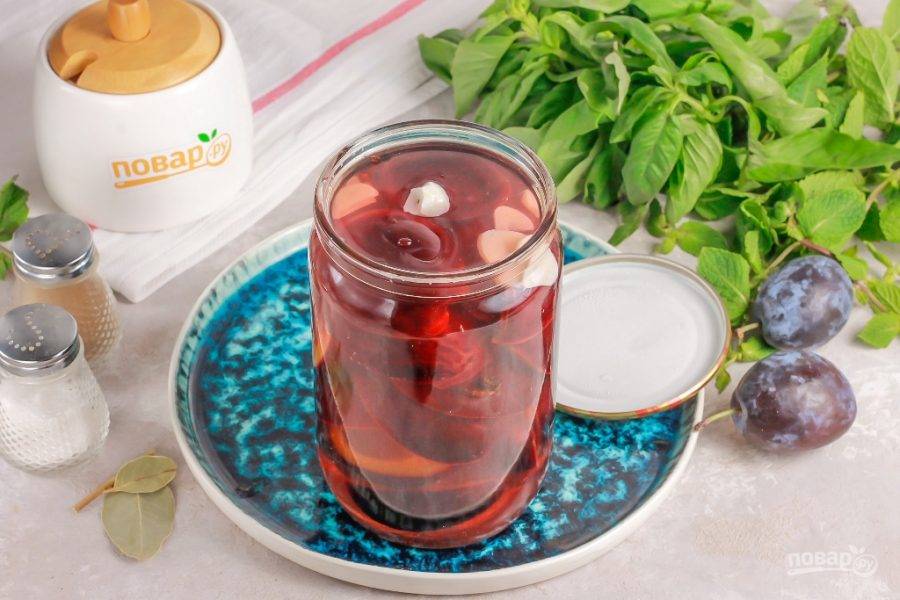 Остудите банку со сливами при комнатной температуре, а после перенесите в кладовую, погреб, гараж или другое место для хранения.