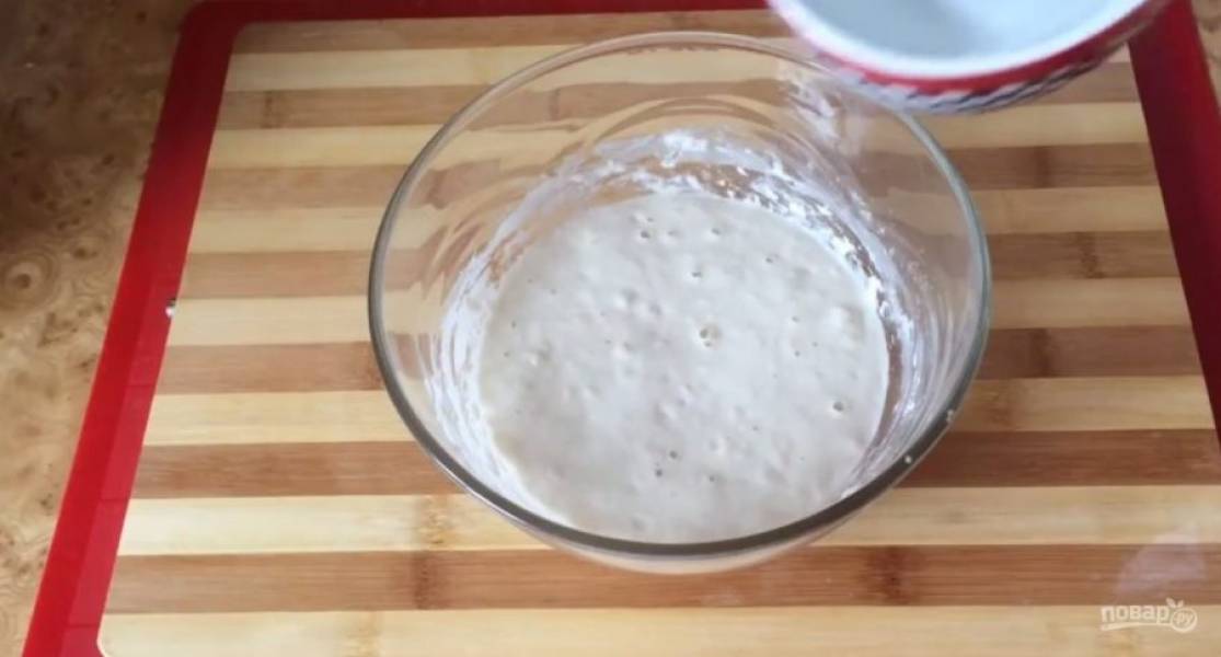 Для приготовления закваски смешайте стартер с водой комнатной температуры и просеянной мукой. Накройте. Оставьте при комнатной температуре на 4-12 часов.