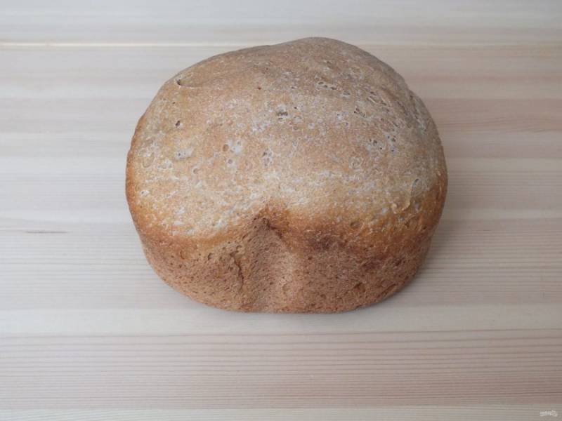 По окончании процесса выпечки и после звукового сигнала, достаньте хлеб. Переложите на доску, положите на бок и выдержите в таком положении 3 часа, если есть возможность, то заверните хлеб в полотенце оставьте на ночь.