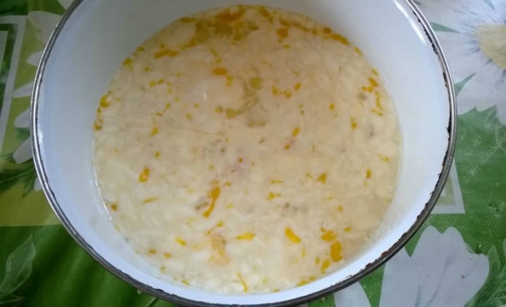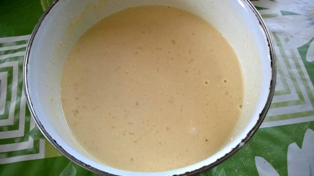 Добавляем пшенную муку, соду и замешиваем тесто.
