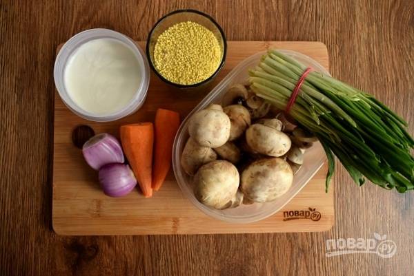 Подготовьте необходимые продукты. Овощи и грибы помойте и очистите.