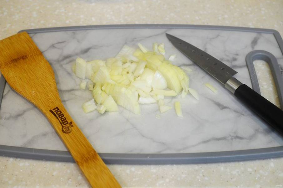 4. Лук нарежьте кубиком.