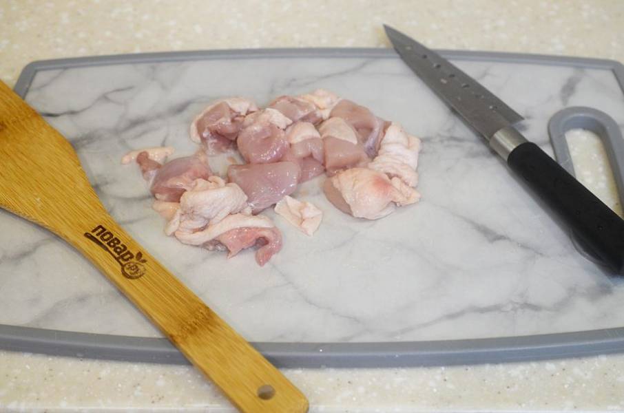 2. Курицу нарежьте на небольшие кусочки.