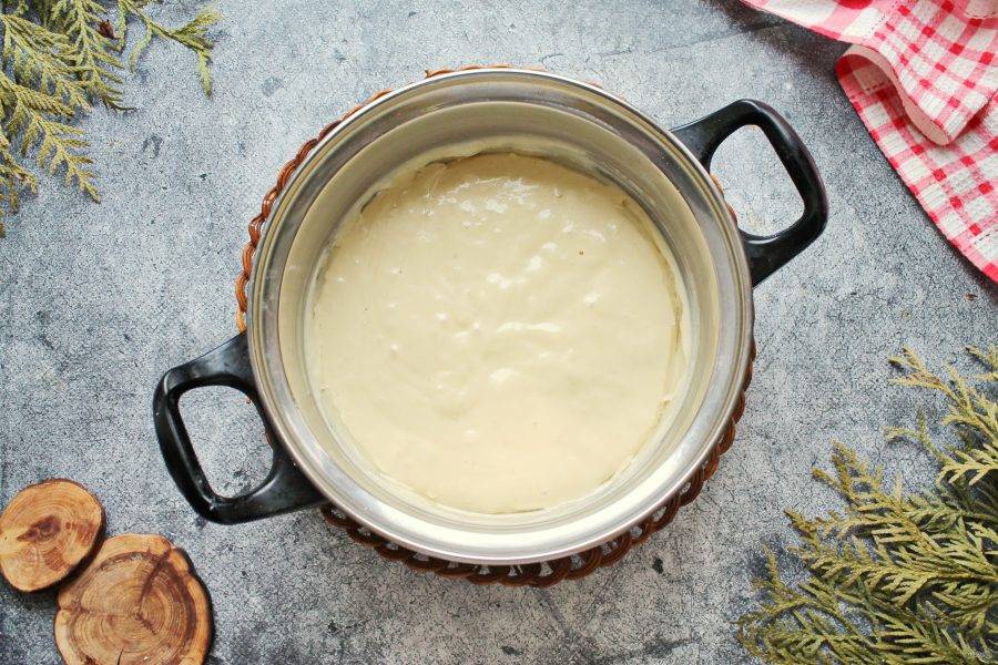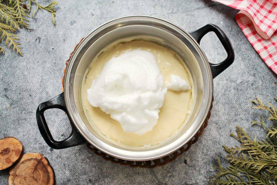 Аккуратно перемешивайте сверху вниз до однородного пышного теста.
