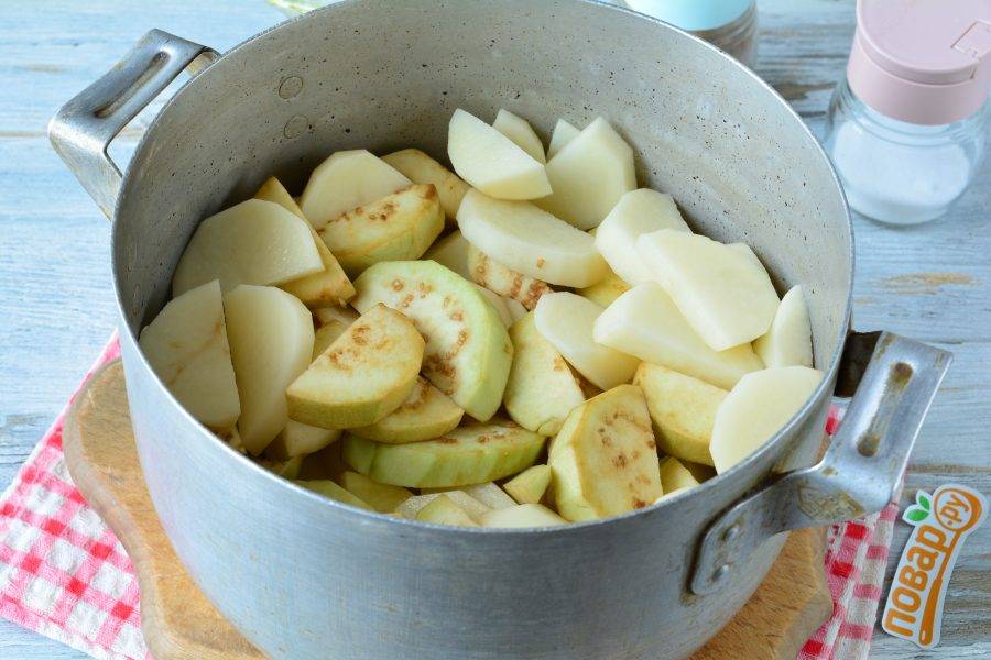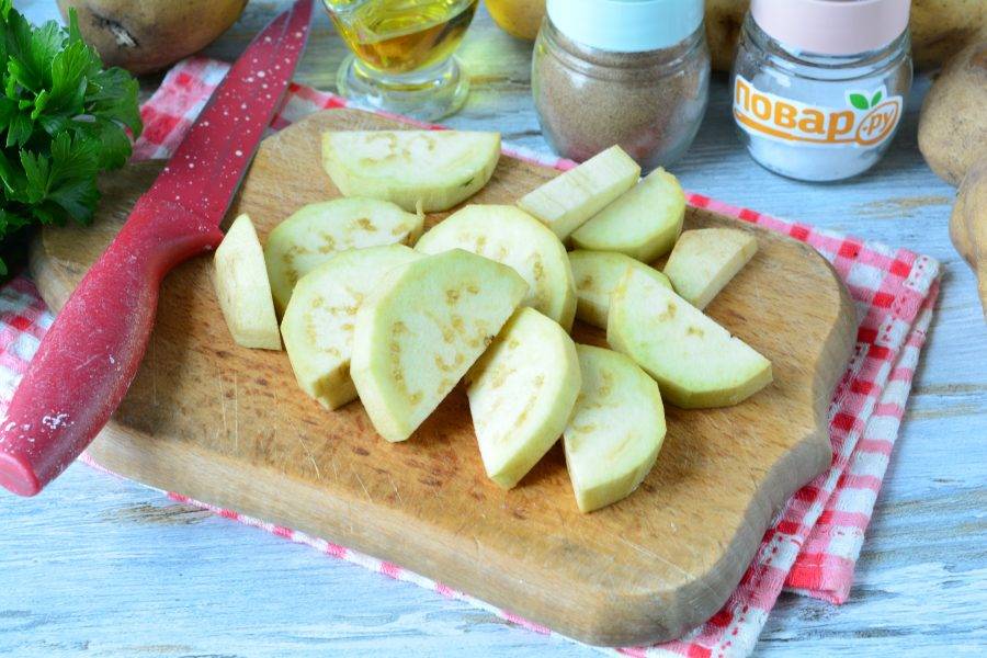 Картофель почистите и нарежьте средними ломтиками.