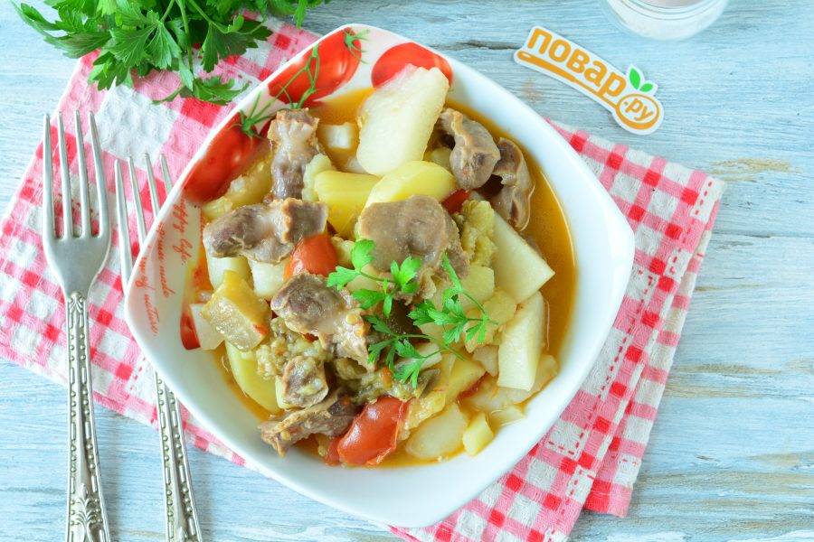 Рагу из желудочков с баклажанами