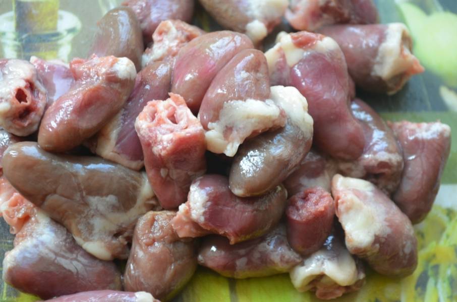 Куриные сердечки по желанию очистить от сосудов,промыть