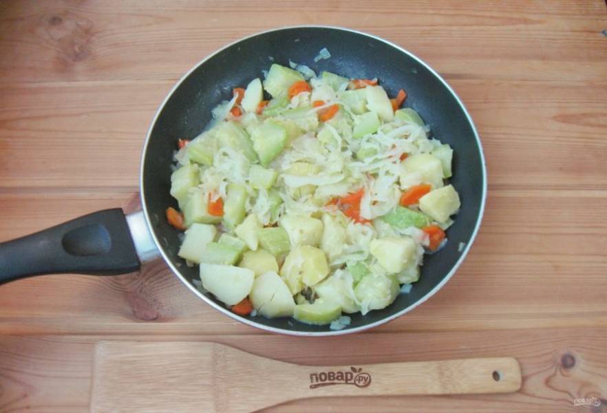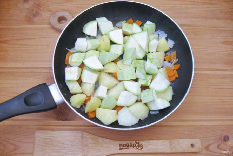 После добавьте нарезанный кубиками кабачок.