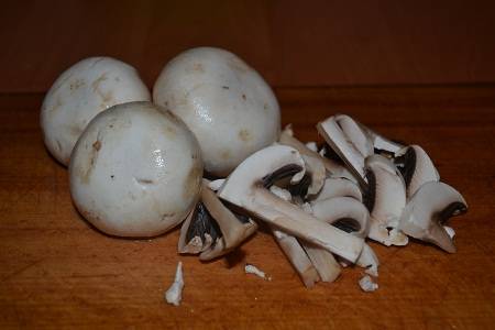 Грибы тщательно моем и нарезаем небольшими кусочками.