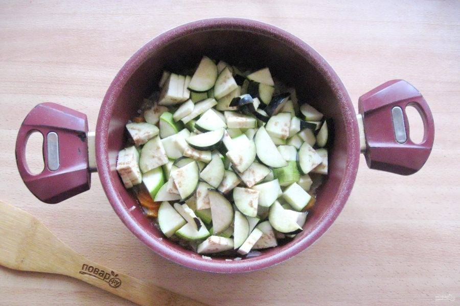 Кабачок помойте и нарежьте кубиками. Добавьте в кастрюлю. Молодой можно не чистить.