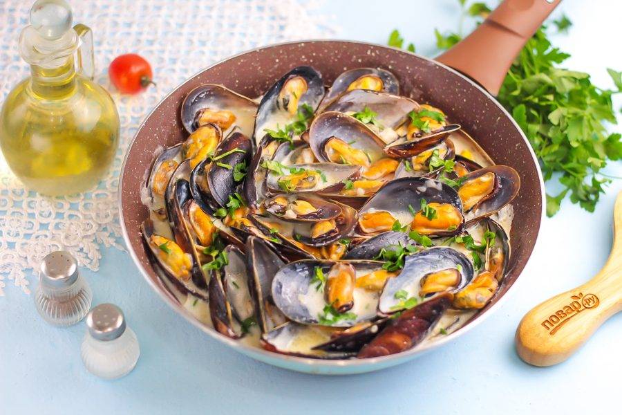 Ракушки мидии в сливочном соусе