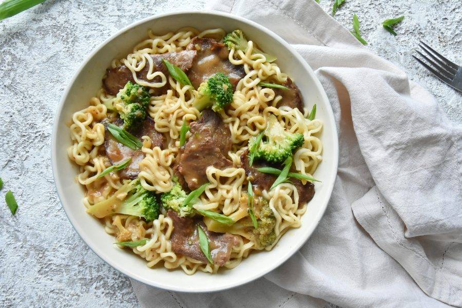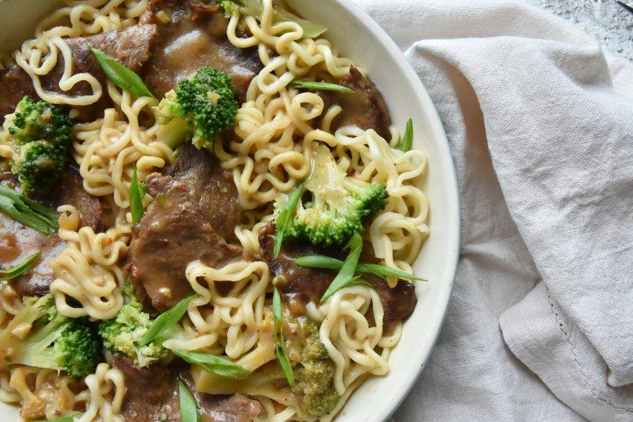 Пикантная лапша рамен в восхитительном ореховом соусе с говядиной и брокколи обязательно понравится вашей семье. Берите на заметку рецепт!