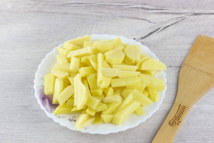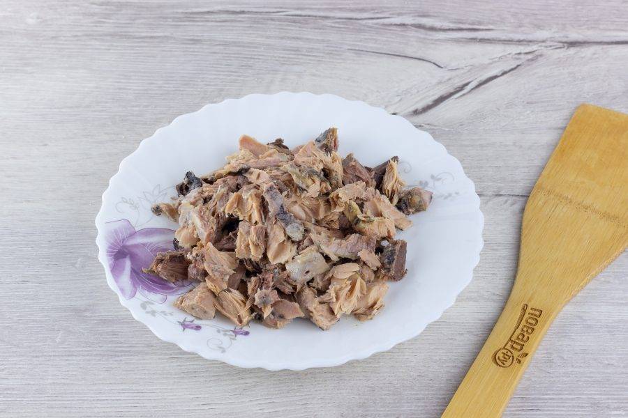 Рыбу тоже разделите на кусочки, косточки удалите.