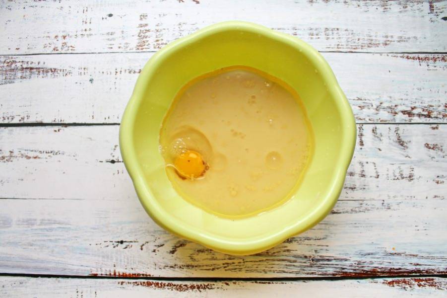 Влейте в миску растительное масло, разбейте яйцо и перемешайте до однородности.
