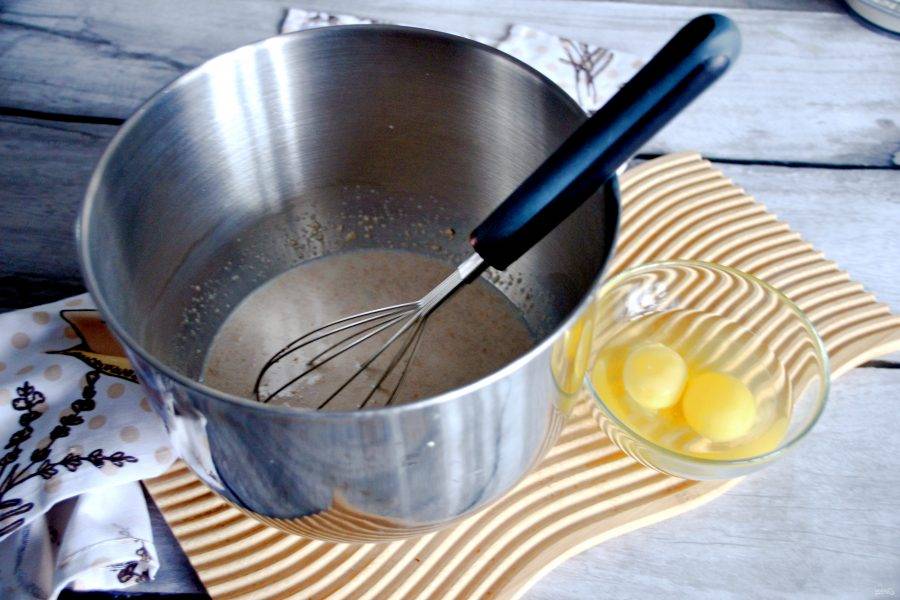 Всыпьте муку, руками или с помощью миксера замесите мягкое, ни липнущее к рукам тесто.