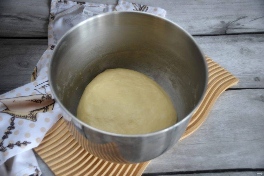 Соберите тесто в шар, накройте пленкой, поставьте в теплое место для брожения на 1 час.