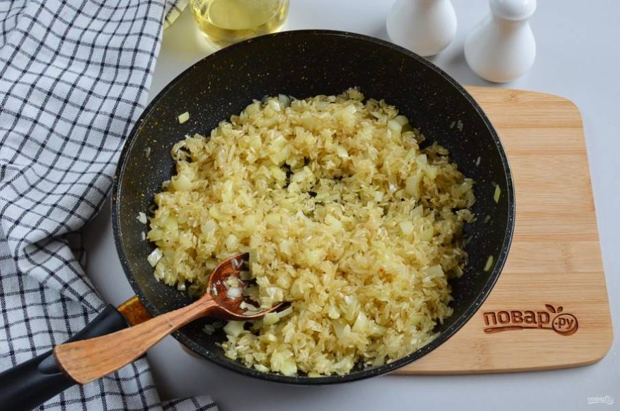 У меня уходит 3-4 минуты для обжарки, как только рис начнет менять цвет на кремовый и появится легкий ореховый аромат, значит готово, переходим к следующему этапу.