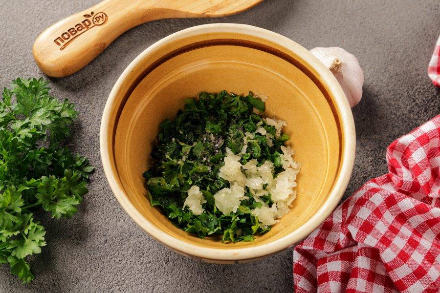 Я предлагаю приготовить соус из зелени, чеснока и оливкового масла. Соль и перец добавляйте по вкусу.