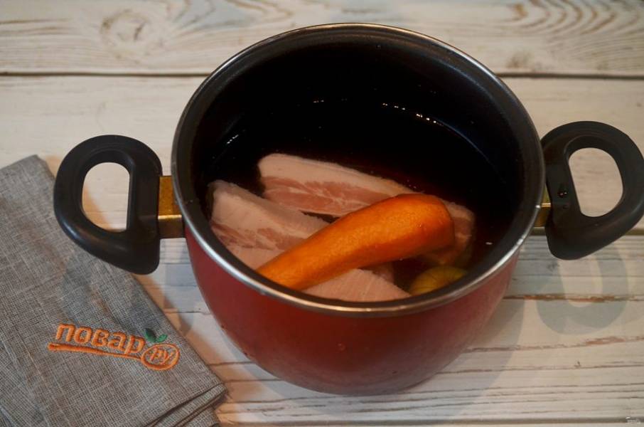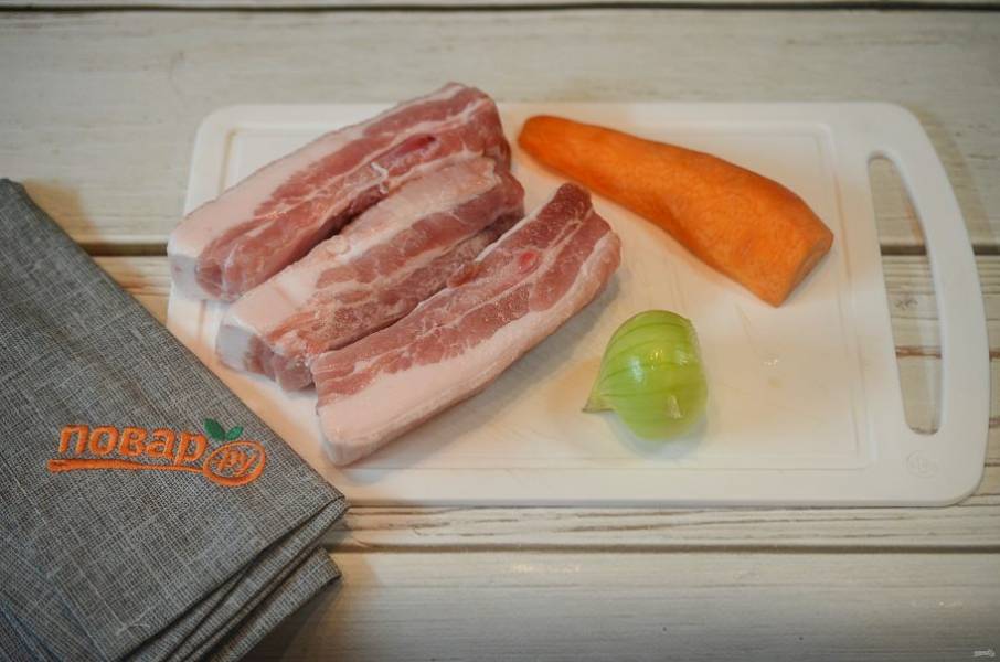 1. Ребра помойте, обсушите. Морковь и лук почистите.