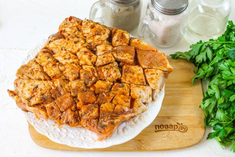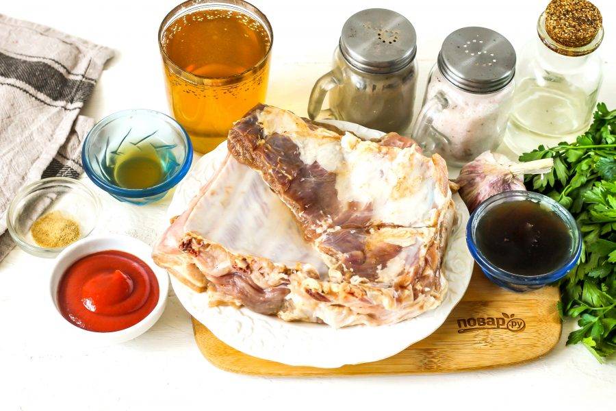 Всыпьте в соус соль и молотый черный перец, перемешайте. Разделите соус на две части и в одну из них вмешайте растительное масло. Этой массой вы будете обмазывать ребрышки при выпекании. Сами ребрышки промойте, обсушите бумажными салфетками. Нарежьте мясную часть по диагонали вправо и влево, но не до конца и обмажьте частью соуса без масла. Оставьте мариноваться примерно 30 минут.
