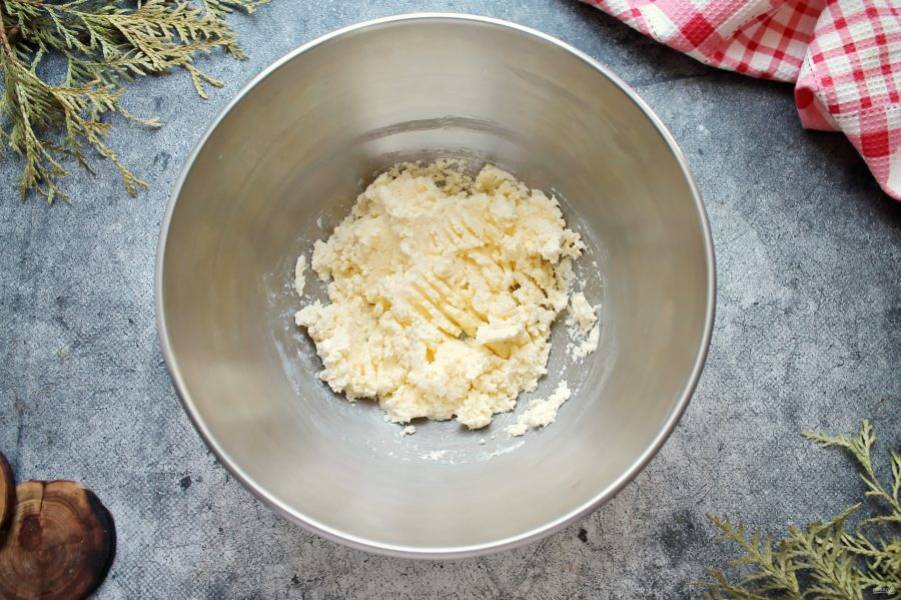 Замесите мягкое и однородное тесто. Накройте тесто и уберите в холодильник на 30 минут.